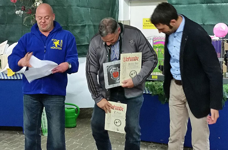 Hörstein sucht das Superhuhn 2014 Der "Abräumer" des Tages. Wohin mit den ganzen Preisen. 3 x 33 kg Futter hat er auch noch gewonnen.